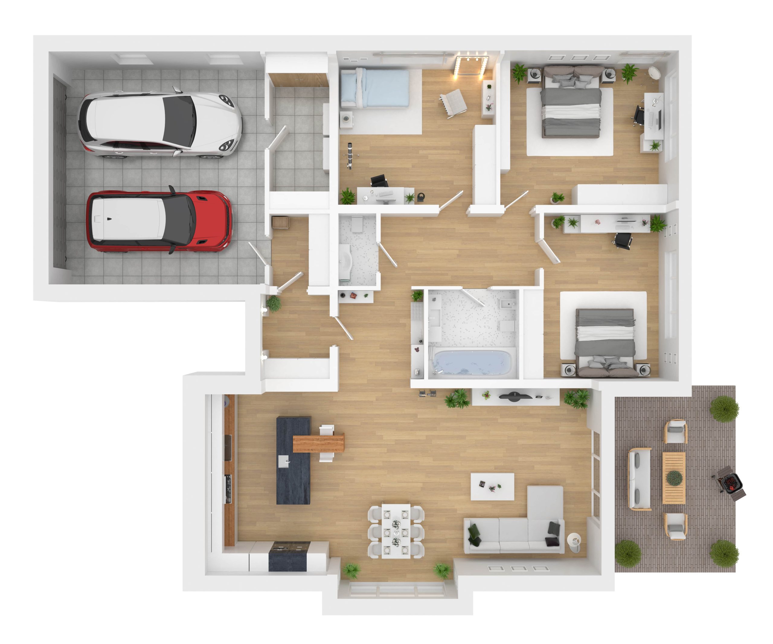 • Terrace garden with seating spaces